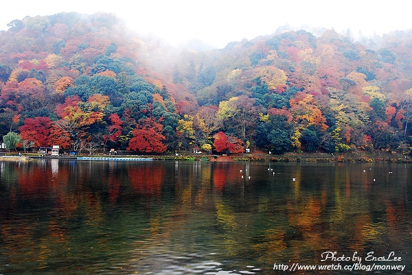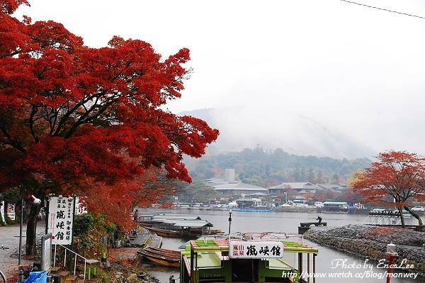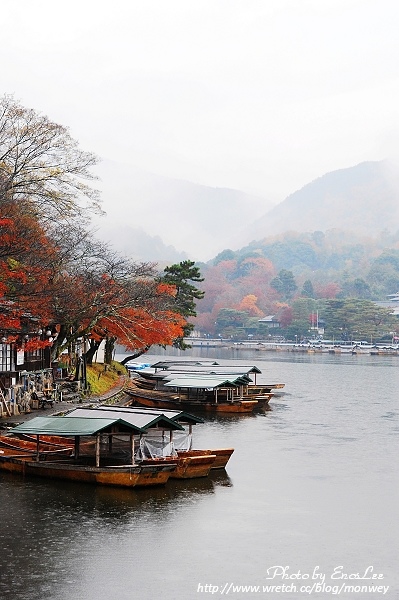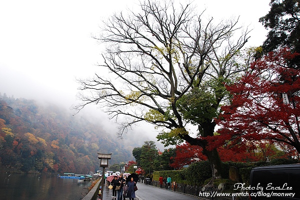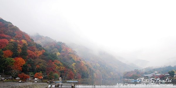 7.從渡月橋上即可看到整個大景,雖然下雨山頭因此罩著煙嵐,卻仍有如詩般的美麗景色