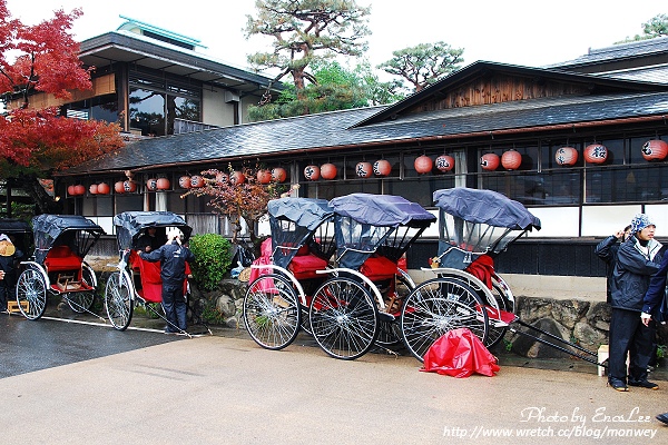 4.這天天氣並不好,大半時間都是下著雨的,從車站往渡月橋的方向走,還有一小段路,途中經過嵐山溫泉...這種天氣應該要進去享受一下的才對,當時怎麼會沒去呢?
