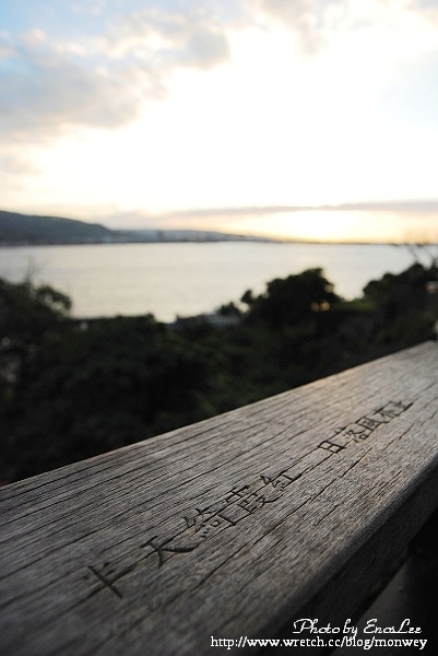 6.一旁欄杆上的題字"半天绮霞紅,日落風亦止"