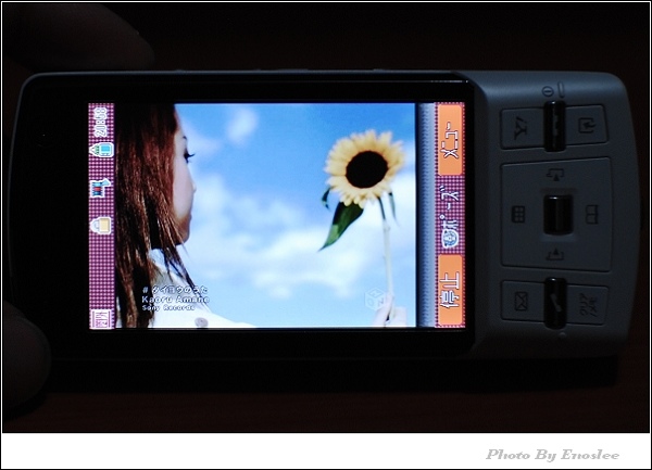 23.中間綠色框框是自動追蹤對焦的表現,他還有防手震功能,另外錄影可錄640x480解析,每秒30影格的影片檔