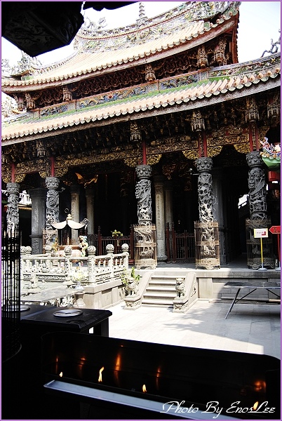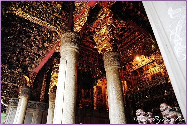 全 廟 建 築 均 以 精 彫 細 琢, 歷 經 四 十 九 年 尚 未 完 成; 殿 內 之 木 雕, 石 刻, 浮 彫 或 銅 鑄, 無 一 不 是 匠 心 獨 運 鬼 斧 神 工 之 傑 作。出處來自李梅樹紀念館網站