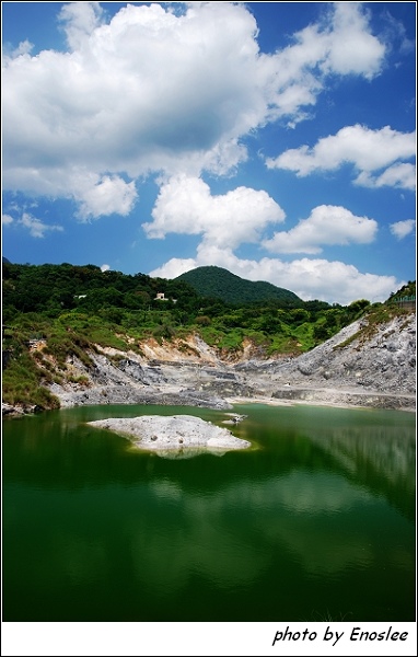 地熱谷~果然很熱的感覺,可能是我們正中午的時候到吧! 只見到一組趴婚紗的人馬,這裡真是沒什麼人想來的感覺。