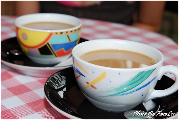 5.我們點的都是單餐,有香蒜麵包跟飲料多選一(羊奶咖啡、新鮮羊奶、純咖啡、紅茶、綠茶)。