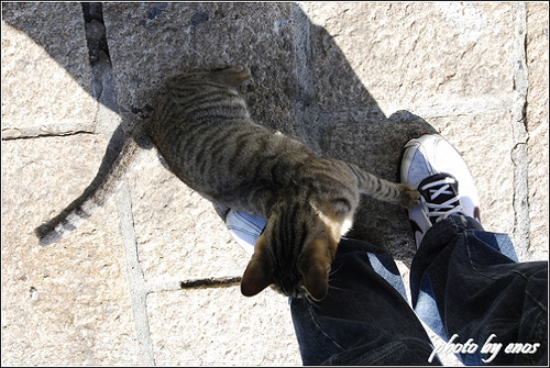 淡水捷運附近的河堤沿岸上街貓似乎不少,冬日的太陽出來時很常看到有貓咪出來作日光浴呢!