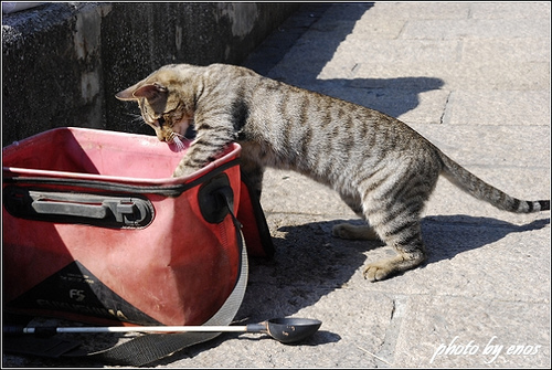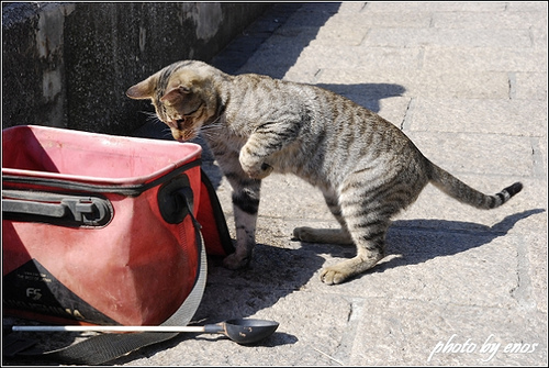 9.後來那隻魚太會跳跳到外面了,這隻貓就靜靜的看著那隻魚在那邊掙扎.....掙扎........