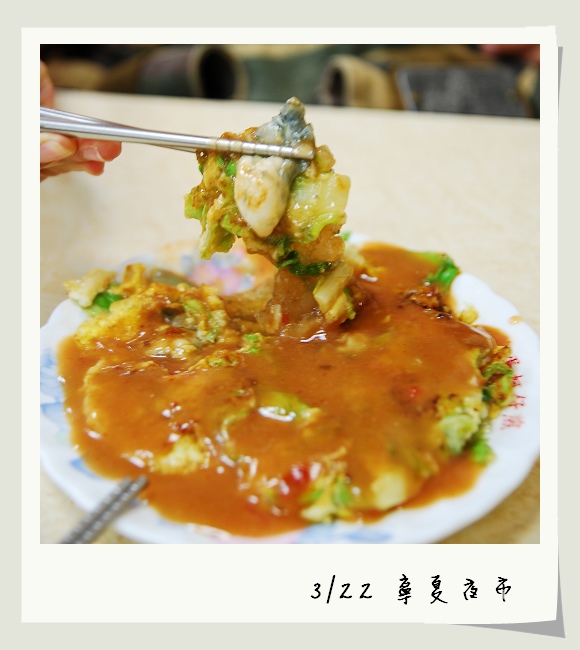 16.所以買了飲料喝以外,又來吃這間有著藍色招牌的雞蛋蚵仔煎。