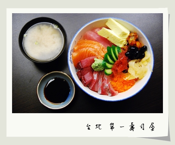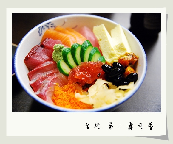 1.今天就是為了這道菜來的,『散壽司』~ 看起來相當的美味啊! 事實上也是不錯,內容物有四種生魚片、黑色的豆子、蛋、海蜇皮、肉鬆、螺肉、小黃瓜等食材。