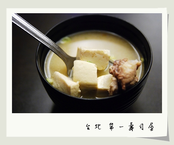 7.味噌湯。因為飯的分量滿多的,怕太乾所以加點的味噌湯,裡面的料還滿多的,圖中所見約一半而已吧! 除了豆腐以外的是魚肉。