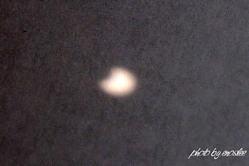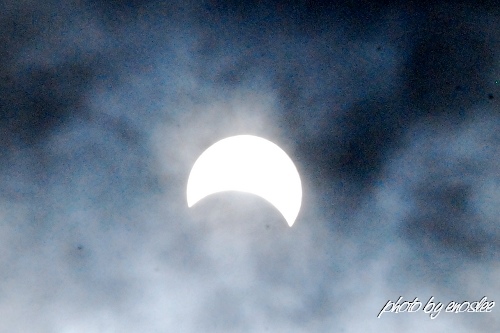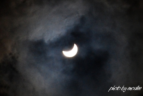 08:50拍的時候,由於太陽光還很大,所以用針孔投射法。在紙板上刺一些小針孔,日蝕發生時放在白紙上方,就會發現太陽光經由紙板上的針孔投射在下方的白紙上,形成一個有缺角的太陽。