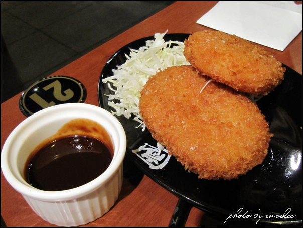 7.另外還多點了香酥可樂餅,外皮脆薄香酥,兩塊還不同口味,一是咖哩一是原味。(100)