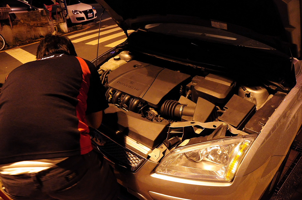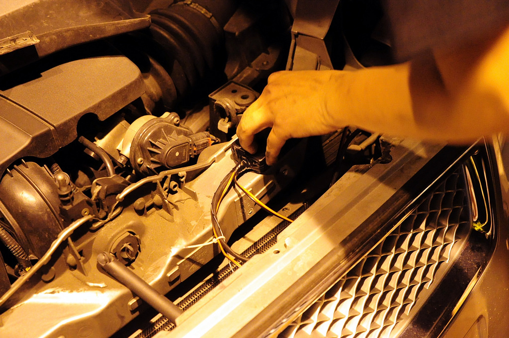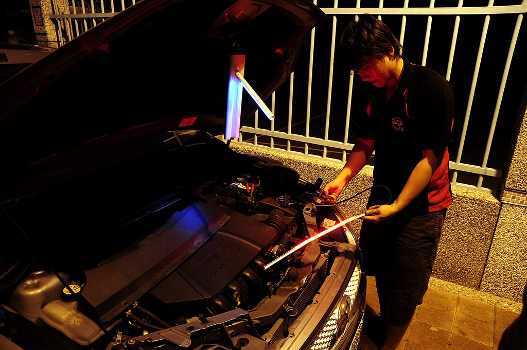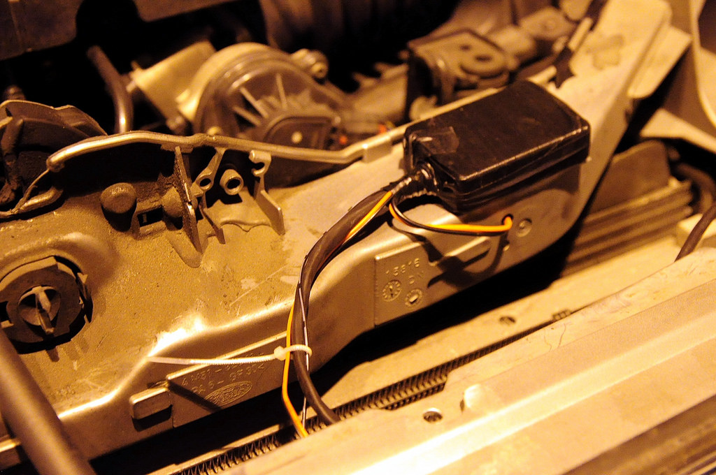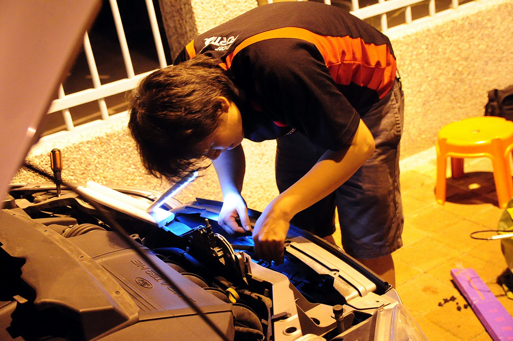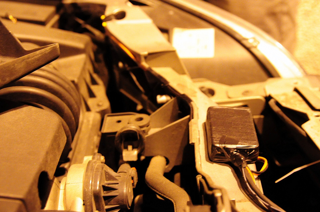 霹靂燈的控制盒,固定在 Focus 的引擎室鋼樑上。說到這個,Focus 不虧是強壯過人,這條鋼樑好厚實: