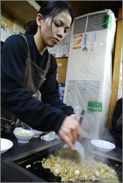 話說我們只知道來這裡吃月島燒,可是卻沒有先找好哪家店,於是又憑感覺挑了間看起來最想吃的店進去,沒想到還真挖到寶了! 後來出來還有人在排隊呢,其中不乏拿著觀光導覽的遊客。
