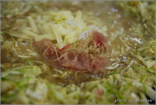 8.前言講完了,接著進入正題,月島燒的吃法,首先會把你點的料全部放在一個大碗公裡。