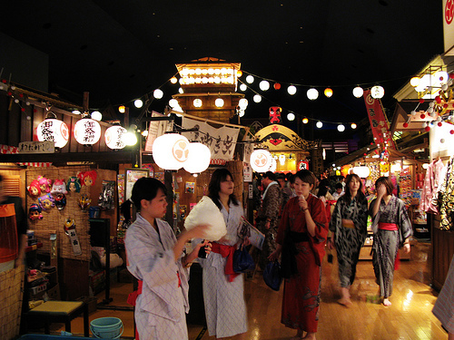 在櫃檯選好浴衣然後就進來置物換衣服啦! 一進來就跟小市集一樣,大家穿著浴衣逛街好熱鬧啊!!
