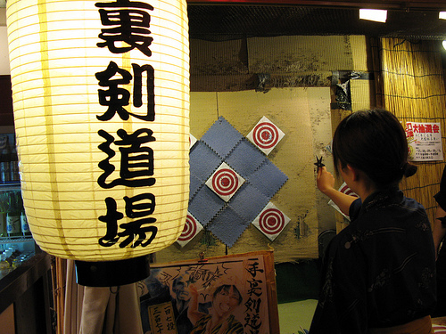 有吃又有得玩呢! 射飛鏢變成了日式的射手裏劍,跟忍者一樣!