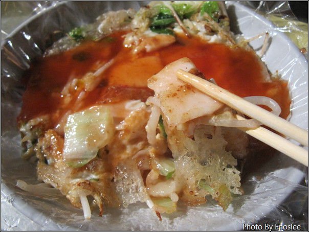 接下來就逛到了這攤,想說蚵仔煎比較常吃到,就點了花枝煎來試試