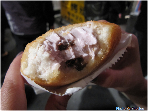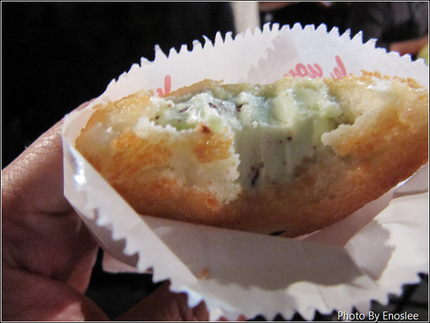 外皮溫熱酥脆,內餡是好吃的冰淇淋,算是還不錯吃的零嘴(此為薄荷巧克力口味)
