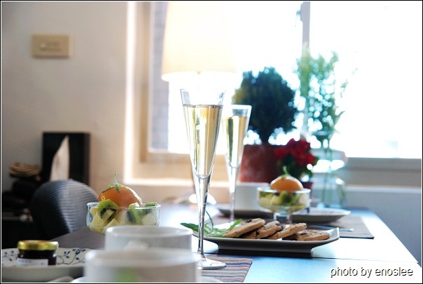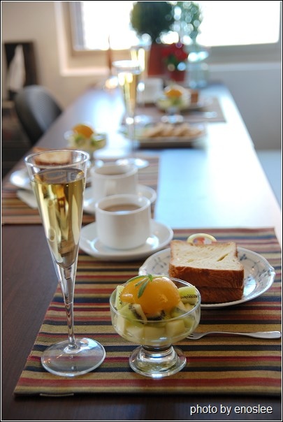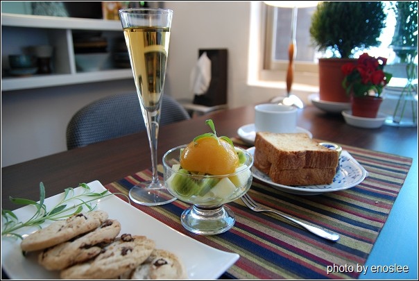 香檳杯裡裝的是蘋果汁,整個早餐非常健康呢