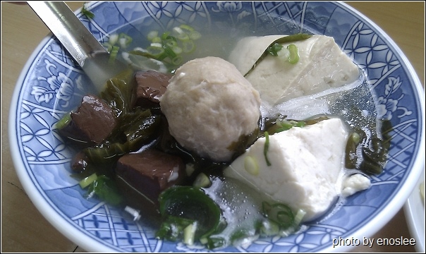 湯有三種口味,所以點了綜合湯,有豬血、貢丸、豆腐,湯屬清淡,算是好喝那類的,三種料也都好吃,想吃重口味他有辣椒醬跟胡椒可以添加