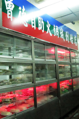 在等待的時候先去拿火鍋料吧! 他一盤盤幫你裝好,所以結帳時也是一盤盤算錢