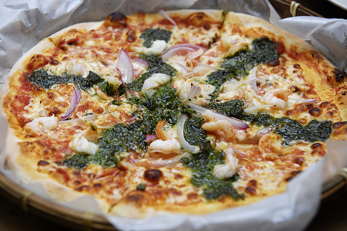 羅勒醬鮮蝦:不只有羅勒醬和蝦子,更為您加了紫洋蔥、撒上檸檬皮,別緻清爽新風味。  喜歡重口味的好選擇。