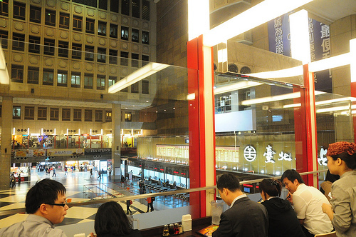 等了十幾分鐘就有位子啦! 雖然位子不多,不過因為吃麵的流動率高,所以不太需要等,旁邊就能看到台北車站大廳的動態