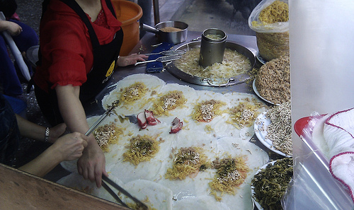 潤餅捲: 擺攤在85度C對面(文化路與和平街路口),下午出沒