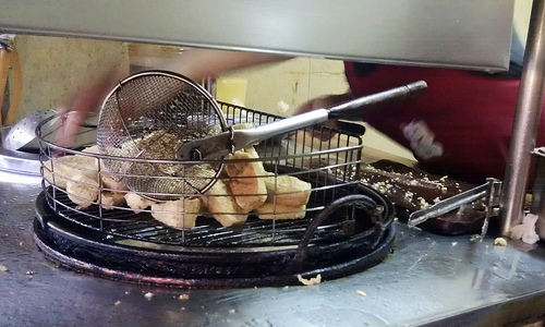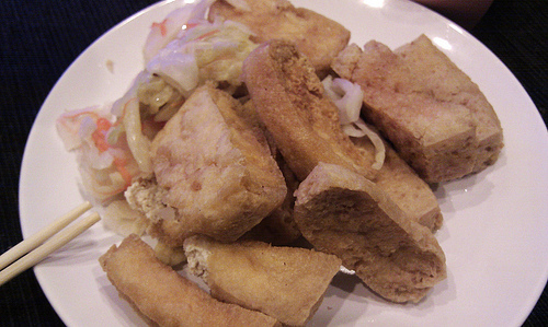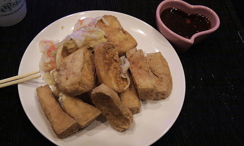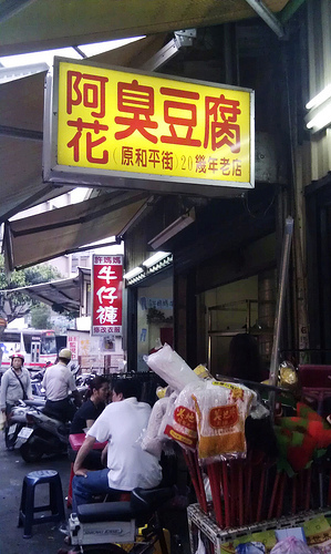 阿花臭豆腐: 在三峽愛國路市場這邊,東東食品烘培坊旁的巷子進去