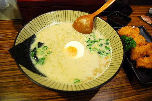 標準碗豚骨拉麵只要120元,其實還不小碗,不過沒叉燒肉就是,所以我加點了炸豬排