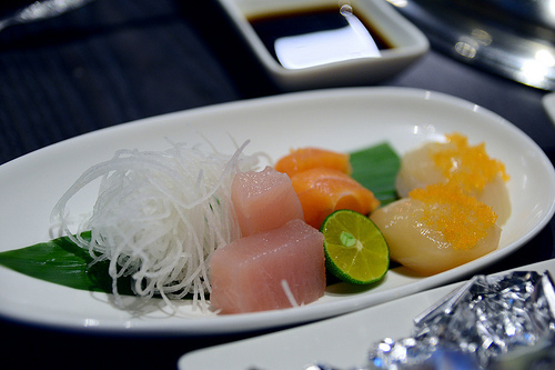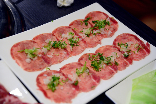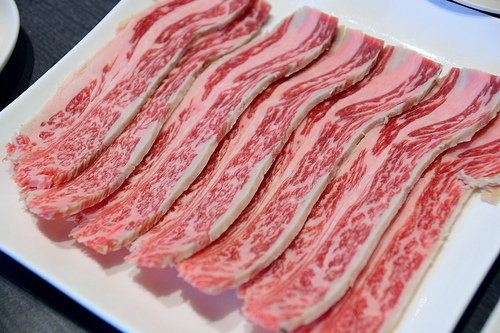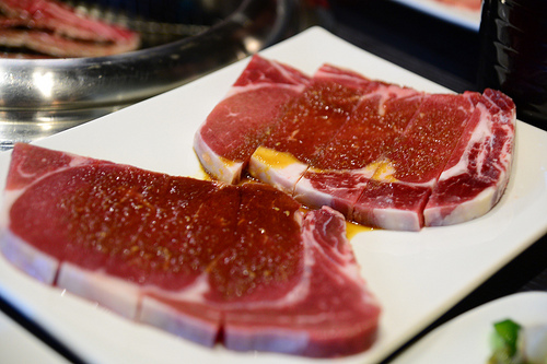 雖然他主打帝王蟹,但我覺得不管是牛肉或者是松阪豬,品質都很棒,吃個十盤也沒問題啊!