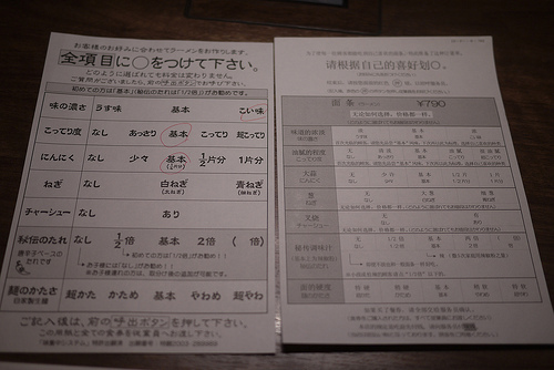 至於麵跟湯的部分就另外一張單子可以填選(有中文版)
