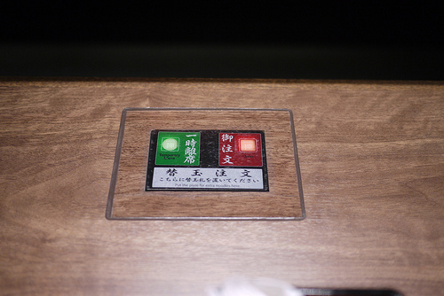 左邊綠色的意思就如字面上:暫時離開(如:去上廁所) 右邊紅色的意思是點餐