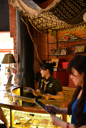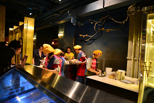 這邊的店員服裝就沒宮原眼科那樣各式各樣的復古制服,反而有點像小丑,不過這是拼貼回收環保的概念的意思(應該)