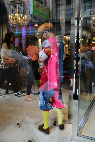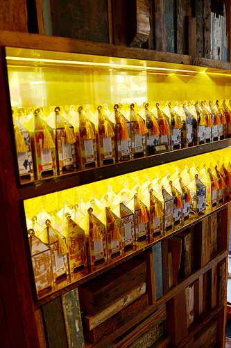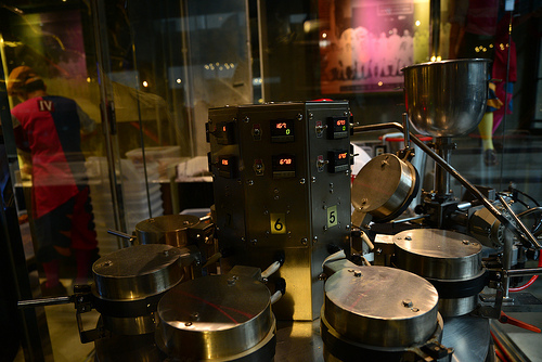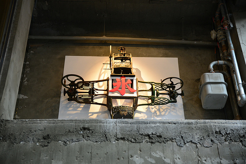 地上一樣有螞蟻,牆上有四台古早刨冰機組成的裝飾