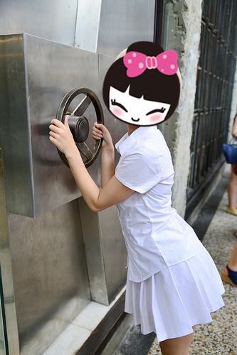 一樓正中有個金庫門,不過他不是大門,只是裝飾品,可以體驗一下轉金庫門的感覺,但他絕對打不開就是