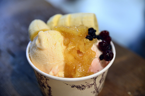 除了口味非常多,而且可以免費灑三種料,有新鮮水果、水果乾、日出鳳梨酥、乳酪蛋糕等等,非常豐富啊!