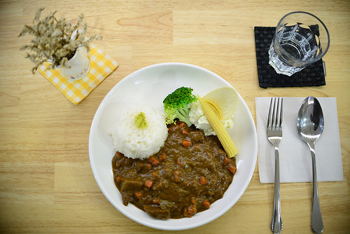這飯量看起來好像不大(就算不夠也可以追加),但其實是盤子大關係,所以他給的咖哩其實不少,而且也不會只有醬汁沒有肉這樣