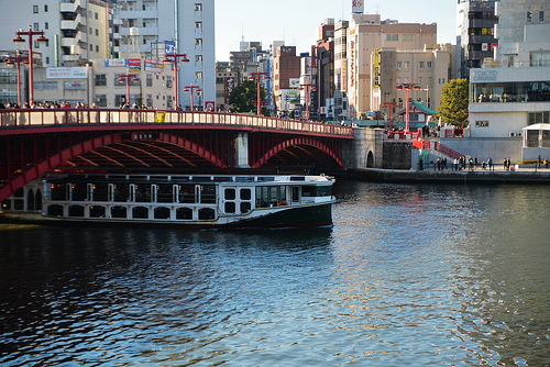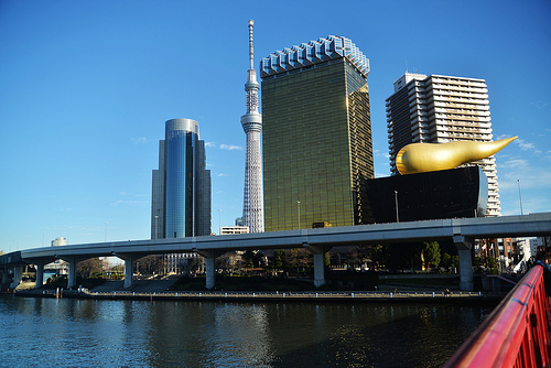 從上野搭地鐵到淺草,過了這吾妻橋在過去應該就很近了,而且還可以在橋上拍下東京晴空塔跟Asahi朝日啤酒大樓的著名地標