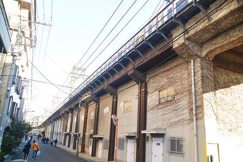 接著只要沿著鐵道旁直走就會到晴空塔囉!