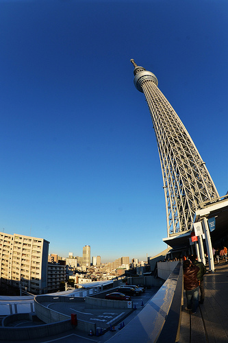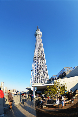 用魚眼拍,把晴空塔放邊邊都歪掉了啦!