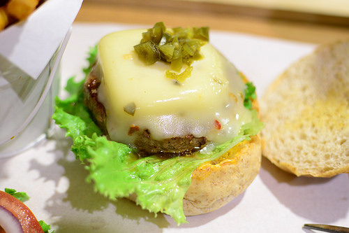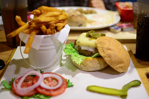 所以同事又領著我來到附近的漢堡店,說這家他也很喜歡,果然餐盤一端上來就讓人滿意啊!