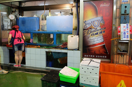 再來就是選妃 挑選你要吃的螃蟹啦,在門口旁就是水族箱