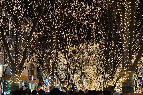 位在森林之城-仙台的定禪寺大街。每年12月大街上整齊的櫸樹就會裝飾上60萬顆左右的彩燈,是大人氣的重要活動