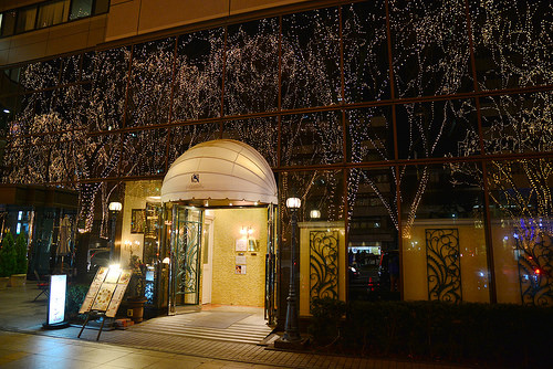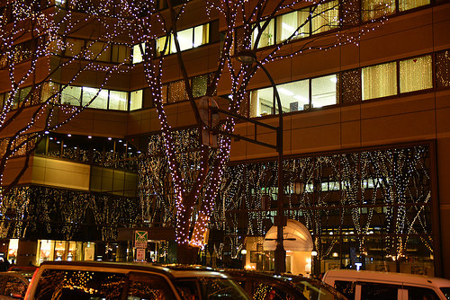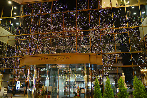 印在周圍建築玻璃上的燈光倒影也非常的美麗