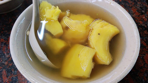 泡完湯出來就是小吃部,因為只有兩人所以沒點大餐(他的雞湯鍋很棒),來碗大碗實惠的薑絲地瓜湯