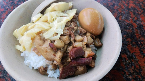 大碗的滷肉飯還有一顆滷蛋跟筍絲~ 以上每樣都是50元