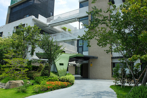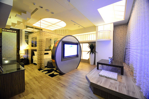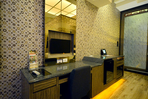 雖然是汽車旅館模式,不過走進來也可以的啦XD 跟親切美麗的櫃檯登記入住後,就直接走到這次入住的306號房,一樓當然就是車庫