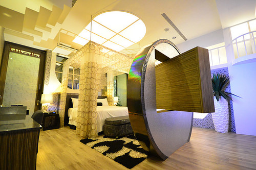 一出電梯其實有兩間房間,其實一開始我還先跑錯,跑到附屬的KTV包相去了>///< 開心了一下之後才有跑回到臥房來