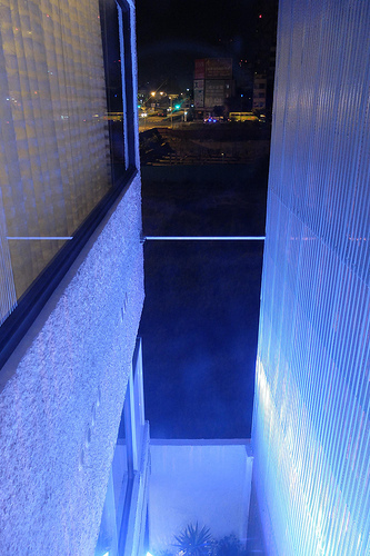 唯一能看到房間裡面的走廊也是在自己出電梯後的範圍內,別人不會到達的地方(左邊房右邊牆,中間看出去不遠處是裕元酒店)
