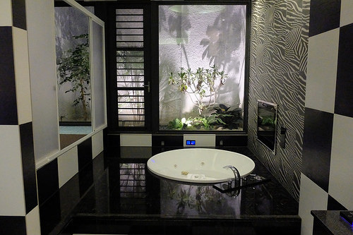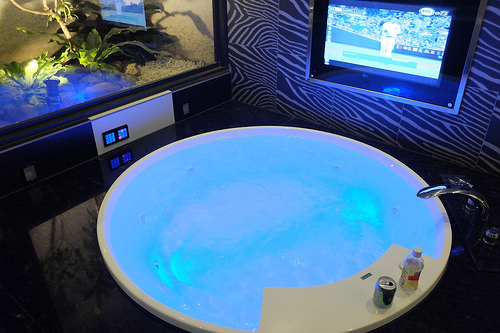 按摩浴缸則是比較緩和的水柱,還有氣氛燈